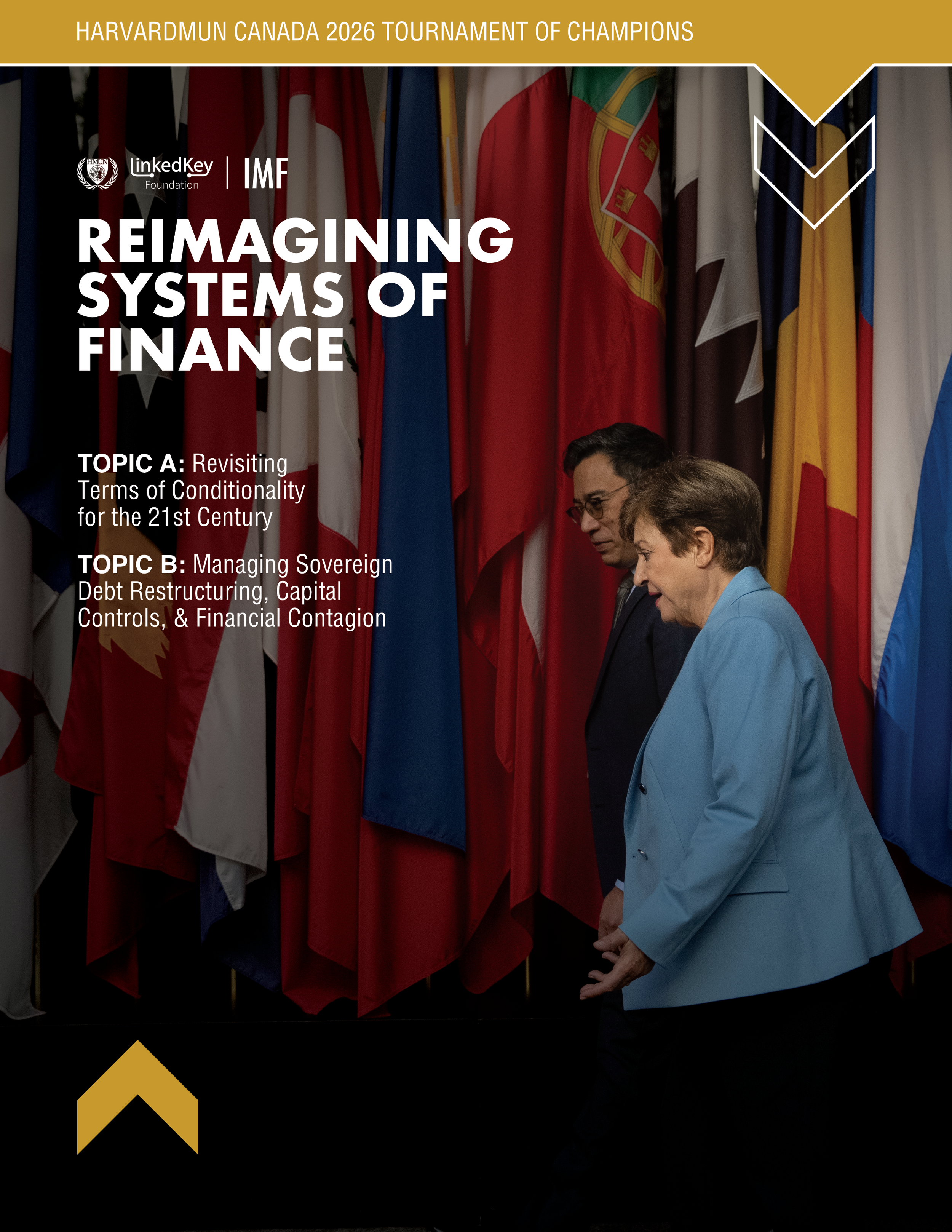 The IMF has been designated as the Tournament of Champions committee at HarvardMUN Canada due to its exceptional academic rigor and demanding pace. The committee’s structure requires rapid progression through complex, interdependent economic decisions, mirroring the real-world complexity of IMF interventions. Success in this committee depends on advanced economic literacy, strategic adaptability, and the ability to synthesize technical analysis with diplomatic negotiation under pressure. The IMF committee looks to ensure a consistently high level of debate, realism, and substantive engagement befitting one of the most influential institutions in the international system.
